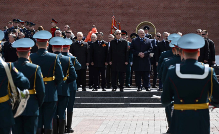 Наряду с Токаевым и президентом России Владимиром Путиным парад посетили президент Беларуси Александр Лукашенко, президент Кыргызстана Садыр Жапаров, президент Таджикистана Эмомали Рахмон, президент Туркменистана Сердар Бердымухамедов, президент Узбекистана Шавкат Мирзиеев, премьер-министр Армении Никол Пашинян.