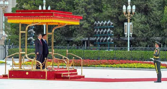 По завершении церемонии Касым-Жомарт Токаев и Си Цзиньпин прошли в зал переговоров.