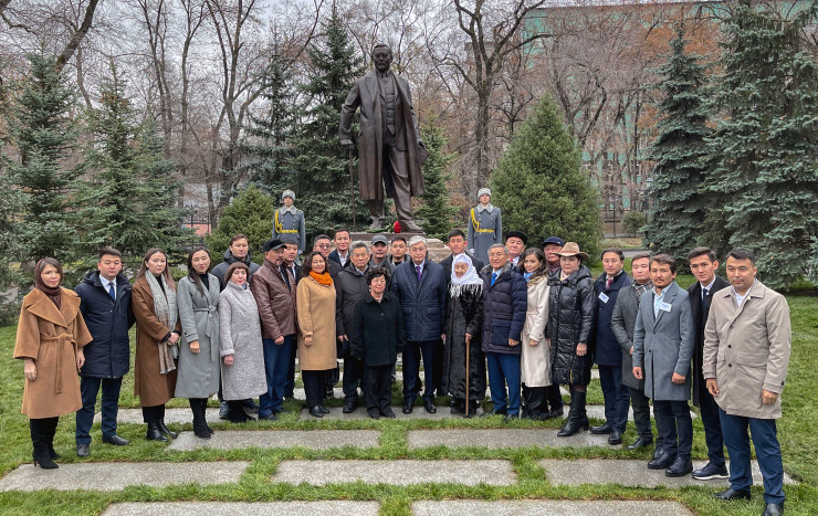 По завершении торжественной церемонии Глава государства побеседовал с потомками великого деятеля, представителями творческой интеллигенции, а также авторами памятника Айдосом Буркитбаевым и Тимуром Ермухаметовым.