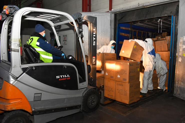 10 апреля при содействии посольства Казахстана в Китае в Алматы прибыли медицинские средства защиты от фондов Джека Ма и Alibaba из города Шицзячжуан (провинция Хэбэй). Груз весом более 4,5 тонны включает в себя 500 тысяч медицинских масок, 5 тысяч защитных костюмов, 50 тысяч медицинских перчаток, а также бесконтактные термометры.