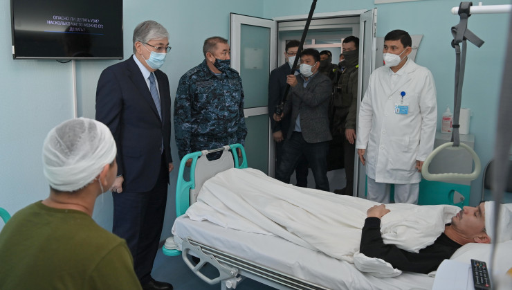 Посещая палаты травматологического отделения, Касым-Жомарт Токаев побеседовал с пострадавшими во время террористической атаки.