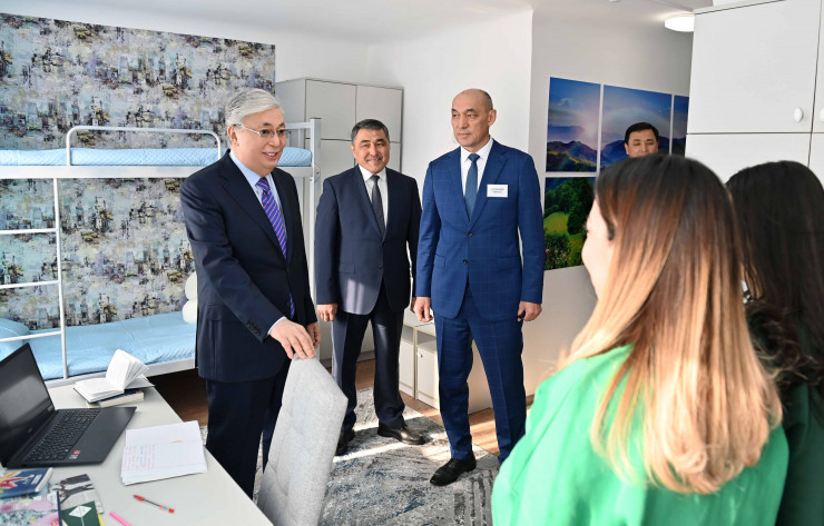 Ректор Ерболат Саурыков рассказал Главе государства о достижениях учебного заведения в деле подготовки специалистов, а также о перспективах развития вуза. Как отмечает пресс-служба Президента, в 2019 году гостиница "Тараз" была переоборудована под общежитие, сегодня здесь созданы все условия для комфортного проживания 500 студентов.