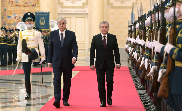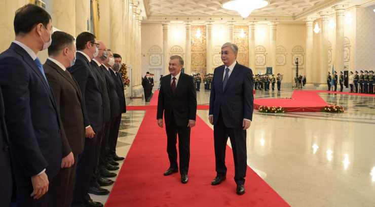 Переговорам предшествовала официальная церемония встречи во дворце Акорда. После того как начальник роты почетного караула отдал приветственный рапорт президентам, прозвучали государственные гимны двух стран. Касым-Жомарт Токаев и Шавкат Мирзиеев совершили обход почетного караула.