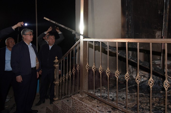 В ходе объезда города Касым-Жомарт Токаев осмотрел жилые дома и административные объекты, наиболее пострадавшие от взрывов на складе боеприпасов. Президенту Казахстана было доложено о ходе эвакуационных работ, ликвидации очагов взрывов и возгорания.
