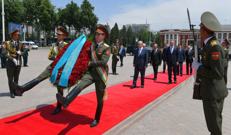 В рамках официального визита в Таджикистан Касым-Жомарт Токаев возложил венок к монументу, расположенному в мемориальном комплексе "Национального согласия и возрождения Таджикистана".
