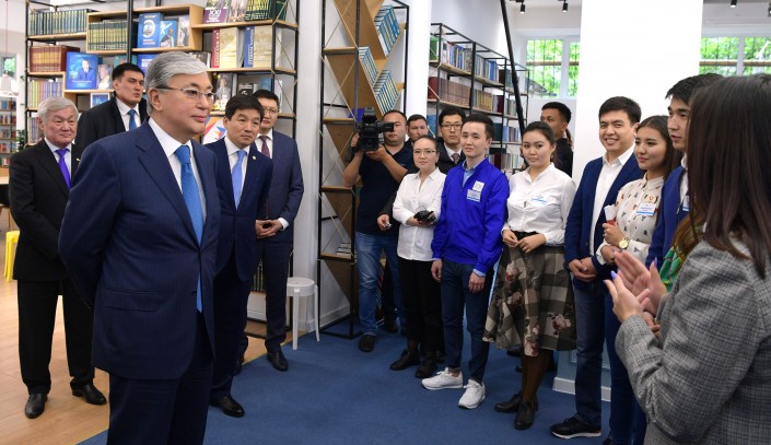 Также Глава государства ознакомился с деятельностью юношеской библиотеки имени Жамбыла, преобразованной в рамках программы "Рухани жаңғыру" в молодежный интеллектуальный центр. Учреждение, работающее в формате "Оpen space", включает зоны электронных ресурсов, книжных и периодических изданий, просмотра фильмов, проведения презентаций, тренингов и конференций. Центр входит в единую библиотечную систему города с общим книжным фондом более 1,8 миллиона экземпляров.