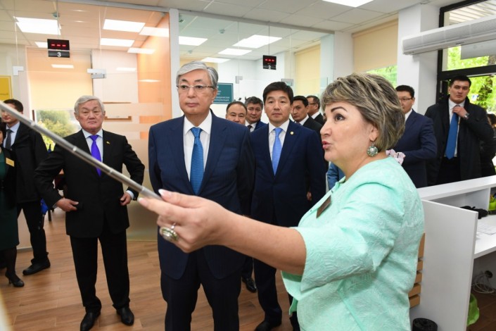 Президента сопровождали аким Алматы Бауыржан Байбек, министр труда и социальной защиты Бердибек Сапарбаев и министр информации и общественного развития Даурен Абаев.
