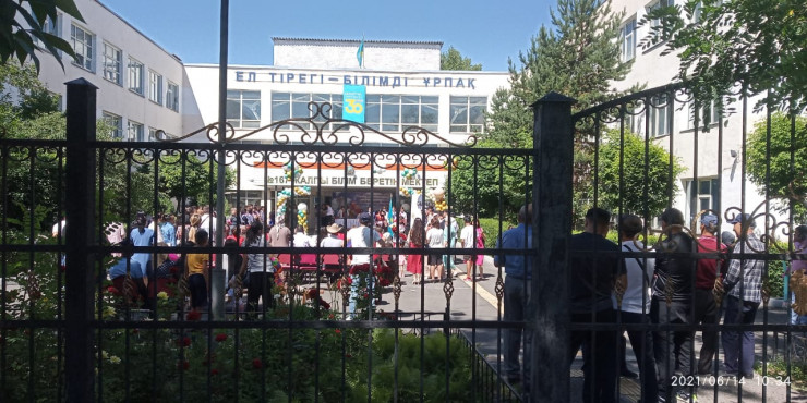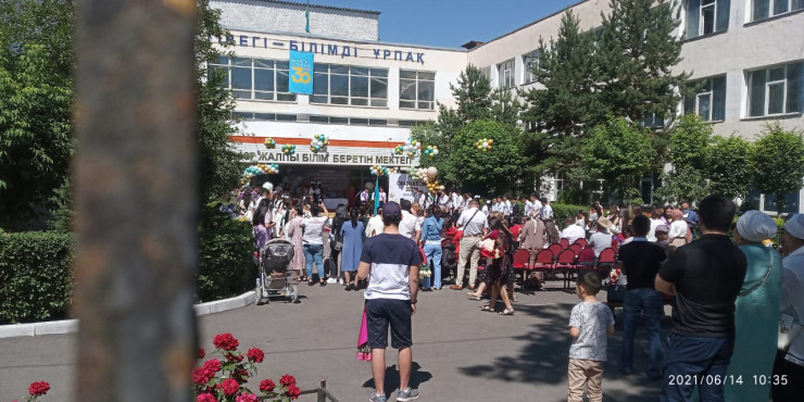 В редакцию Tengrinews.kz читатель отправил кадры толпы людей возле одной из школ Алматы.