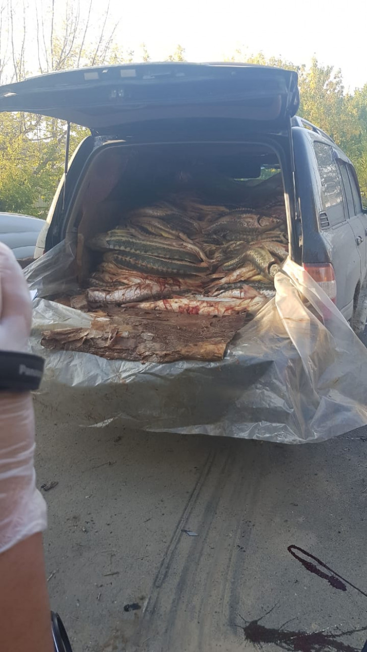 "Общий вес изъятой красной рыбы составил свыше одной тонны, "улов" икры скромнее - 200 граммов. Задержаны 28-летний водитель автомашины и 29-летний пассажир. Оба молодых человека водворены в ИВС. Досудебное расследование проводится по части 2 статьи 339 УК Казахстана "Незаконное обращение с редкими и находящимися под угрозой исчезновения, а также запрещенными к пользованию видами растений или животных, их частями или дериватами", - сообщили в пресс-службе ДП области.