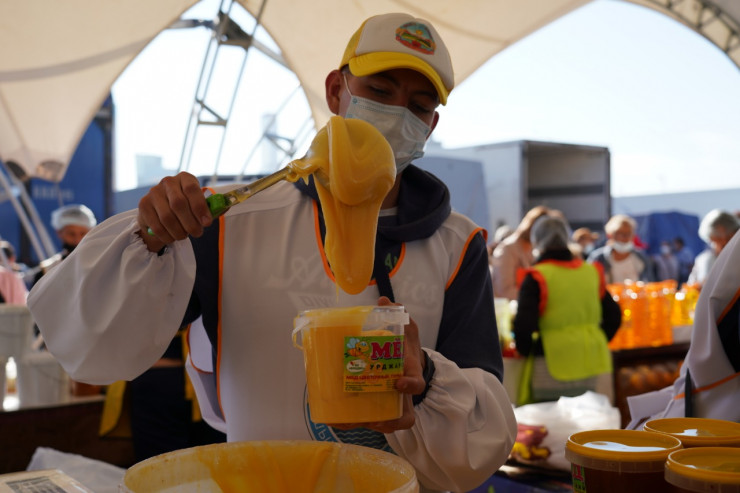 45 тонн конины. У нас, к сожалению, есть так называемая зона вакцинации, в которую входит Восточный Казахстан. Поэтому мы не можем продавать говядину, баранину. После вакцинации скота их ввоз не разрешается. Астанчане хорошо покупают конину. Также мы привезли 40 тонн меда, 100 тонн картофеля. Наша главная цель - не зарабатывать деньги, а предлагать свою продукцию, бренды региона астанчанам", – сказал заместитель акима ВКО Ержан Нурбаев.