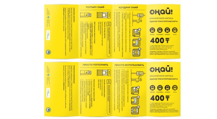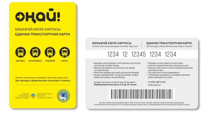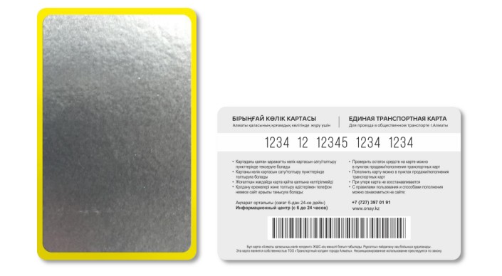 Сообщается, что "Единая транспортная карта" реализовывается в прозрачной полиэтиленовой упаковке в запечатанном виде. Внутри прозрачной полиэтиленовой упаковки находятся инструкция-вкладыш на двух языках русском и казахском и сама "Единая транспортная карта". На ее лицевой стороне нанесен защитный слой из фольги, который необходимо снять перед использованием. Стоимость "Единой транспортной карты" составляет 400 тенге. В стоимость входит одна поездка - 80 тенге, а также залоговая сумма - 320 тенге, которая возвращается в случае возврата карты и при предъявлении чека о покупке карты. "Для плавного и безболезненного внедрения системы электронного билетирования в общественном транспорте города Алматы, до конца года останется возможность платить за проезд наличными средствами и с помощью бумажных проездных билетов", - сообщили в пресс-службе.