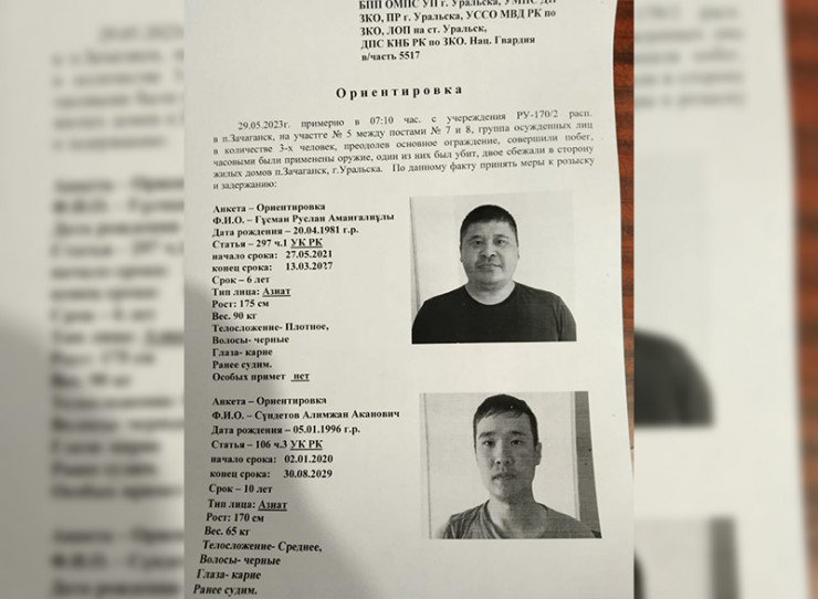 "Трое сбежали, один убит": ориентировка на осужденных напугала жителей Уральска