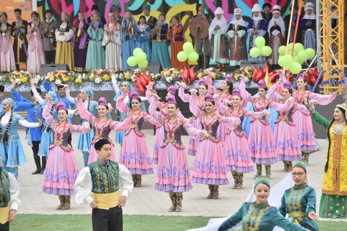 Масштабное действо развернулось во вторник, 21 марта, в одном из древнейших городов страны. Более 10 тысяч гостей встречали сегодня в Туркестане на праздновании Наурыза. Возле Мавзолея Ходжи Ахмета Яссауи был воссоздан этноаул: установлены 33 юрты, национальные качели алты-бакан, дастарханы, которые ломились от национальных угощений: казы-карта, жал-жая, кумыса, шубата, курта, иримшика, жента и многого другого. Только плова было приготовлено более тонны и более 1500 литров наурыз-коже. Таким образом южно-казахстанцы пытались показать гостям из 15 стран, что Туркестан на самом деле является культурной столицей Тюркского мира.