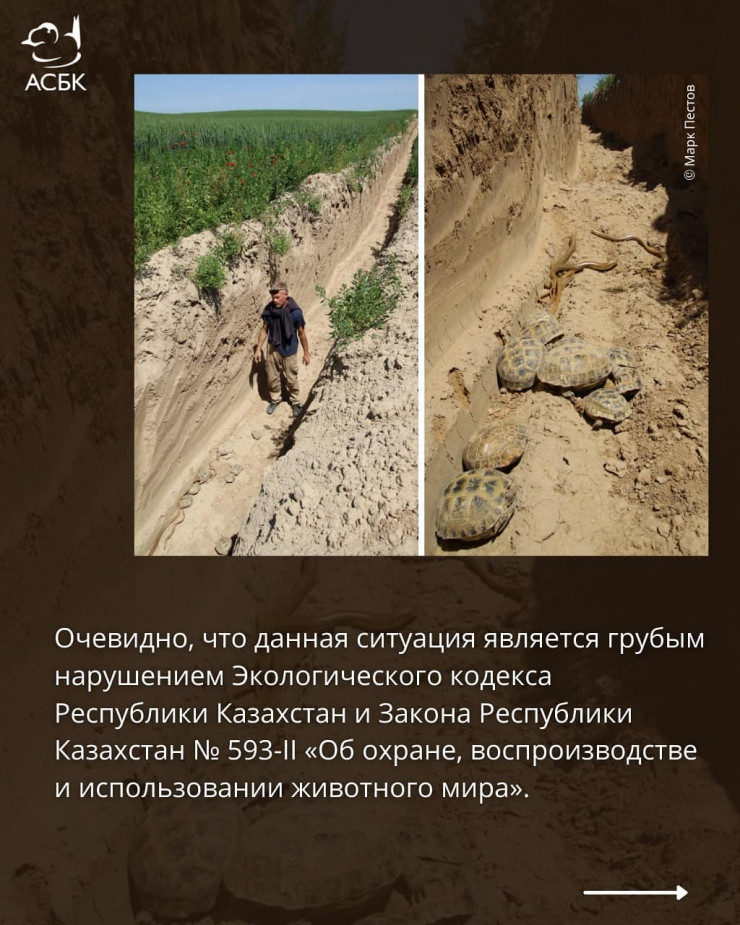"Проблема нуждается в скорейшем решении и принятии конкретных мер по предотвращению массовой гибели животных в оградительных траншеях. В 2019-20 годах АСБК и Институт зоологии МОН РК официально обращались в государственные уполномоченные органы областного и республиканского уровня", - сообщили в ассоциации сохранения биоразнообразия.