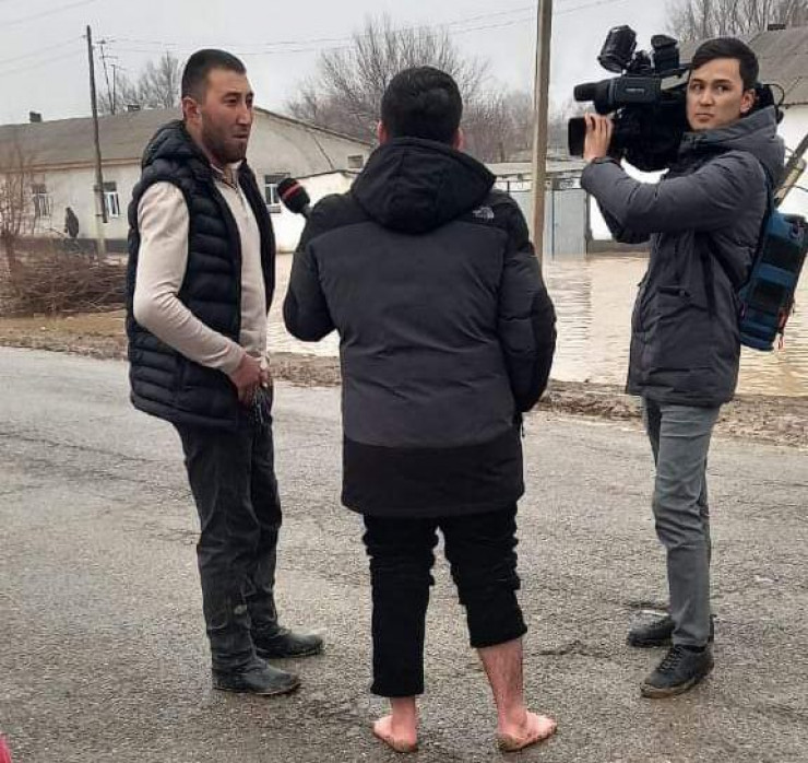 Су тасқыны болып жатқан Түркістан облысында қолына микрофон ұстап, жалаңаяқ сұхбат алып тұрған журналистің суреті Желіде тарап кетті. Massaget.kz тілшісі оқиғаның мән-жайын анықтау мақсатында журналиспен сұхбаттасты.