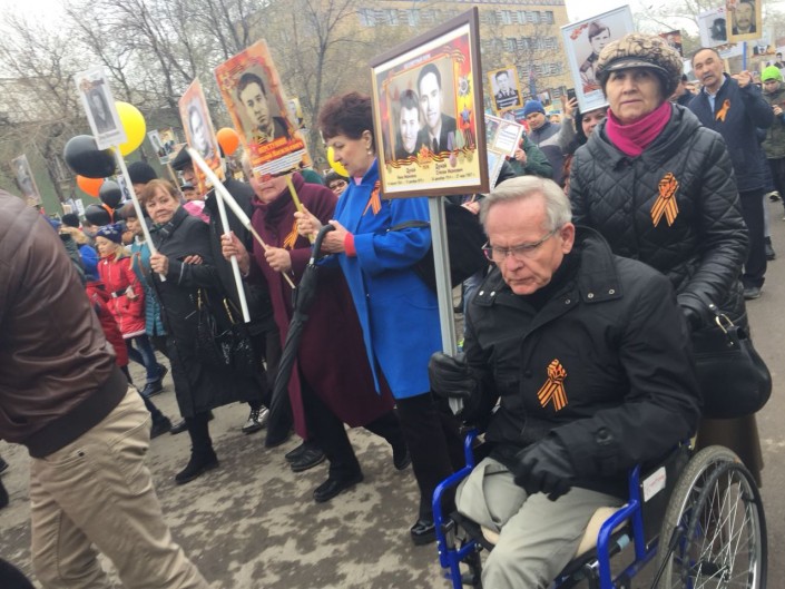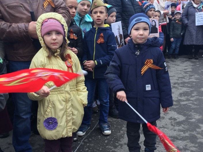 "Мой дедушка погиб под Сталинградом. Я горжусь им. Папа постоянно рассказывает о том, каким он сильным был. Я бы хотел быть на него похожим", - делится один из юных участников шествия Александр Матвеенко.