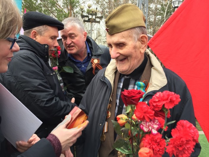 "Мой дед - красноармеец, воевал в четвертой гвардии. Герой Советского Союза. Когда я был маленький, он мне рассказывал истории, как он остался жив, когда был в плену, показывал рану от осколка гранаты. Как он рассказывал, когда он был в плену, его и других солдат заставили копать боевую яму. Но неожиданно его спас раввин. После ему удалось сбежать из этого плена. Все эти истории я помню. В 1994 году, когда мне было шесть лет, он умер. Для меня важно участвовать в "Бессмертном полку", таким образом я вспоминаю своего деда и бабушку Аймахчу Садыкову", - сказал алматинец.