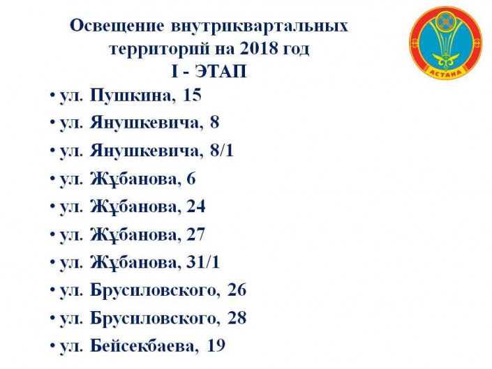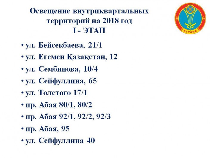 При этом он представил план на 2018 год с адресами, где должны установить освещение.