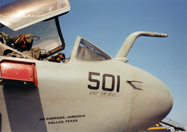 Противолодочный самолет Grumman EA-6 Prowler во время предполетного обслуживания.