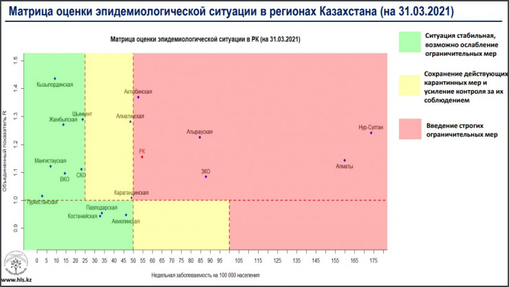 Согласно матрице оценки эпидемиологической ситуации, в "красную" зону вошла Актюбинская область.