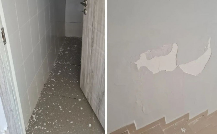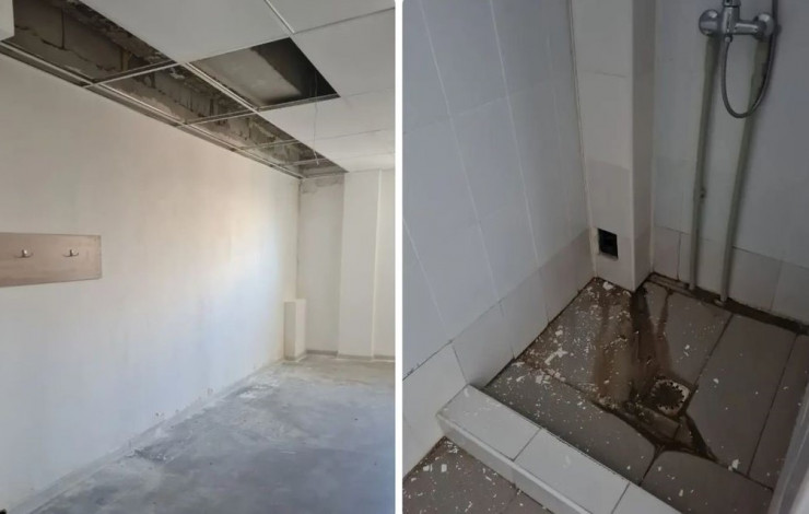 "Трещины обнаружены только в одном помещении на первом этаже. Идут работы по устранению путем демонтажа и повторного монтажа. Внутри школы на каждом этаже есть уборные для мальчиков, девочек, учителей и общие кабинки для посетителей школы. В то же время проектом предусмотрен уличный туалет. Специалисты компании провели проверку. Выявлены дефекты, завезены необходимые материалы и начаты работы. Сроки устранения по благоустройству и кровле - до 18 августа, раздевалке - до 25 августа 2022 года", - сообщили в районном акимате.