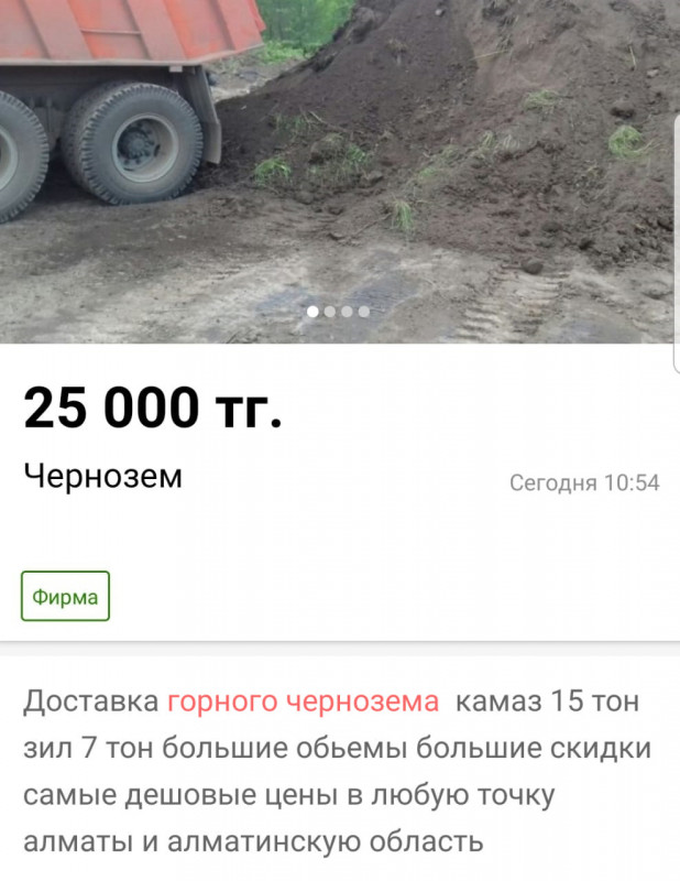 По информации заместителя председателя экологического движения, один грузовик качественного чернозема может стоить до 50 тысяч тенге. На сайте частных объявлений редакция обнаружила десятки сообщений о продаже плодородной почвы.