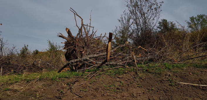 "Смотрите, как аккуратно распилены стволы. Их, скорее всего, увезли на дрова. В шашлычных раньше использовали саксаул, но теперь он запрещен, так как стал редким. Альтернативой для кафе стали карагачи и яблони - доступный материал, который хорошо горит и выделяет мало сока", - говорит он.