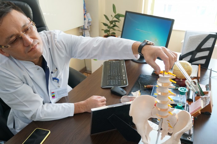 Заведующий отделением объяснил, что в центр поступают пациенты всех возрастов, как дети, так и взрослые, которых не могут оперировать на местах. В год проводится около тысячи операций. Обращаются люди со сложными патологиями позвоночника, спинного мозга, опухолями, дегенеративно-дистрофическими заболеваниями, врожденными аномалиями, последствиями травм позвоночника и спинного мозга.