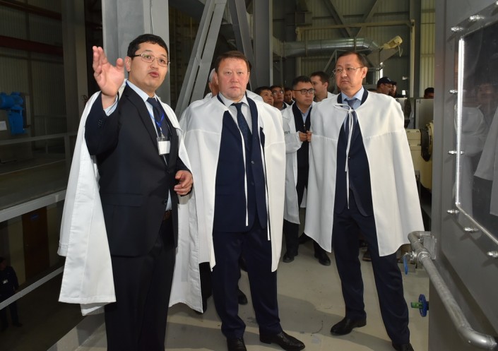 "Это уникальное предприятие. Надо подчеркнуть, в мире всего несколько таких заводов. Здесь будут работать 400 человек, и все они местные жители. Также возобновил работу свинокомплекс на 50 тысяч голов. В скором времени запустят мясокомбинат, которому нет аналогов в Центральной Азии. Мощность мясокомбината - 15 тысяч тонн мяса в год. В перспективе работой будут обеспечены 1 000 человек. Налоговые поступления в бюджет региона ежегодно составят 100 миллионов тенге", - отметил Кумар Аксакалов.