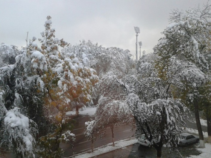 Напомним, в четверг, 13 октября, в Таразе и Шымкенте выпал первый снег. Читатели прислали в редакцию Tengrinews.kz фото и видео природного явления. Приход зимы, судя по всему, стал для многих полной неожиданностью. В Таразе снег стал причиной пробок на дорогах.
