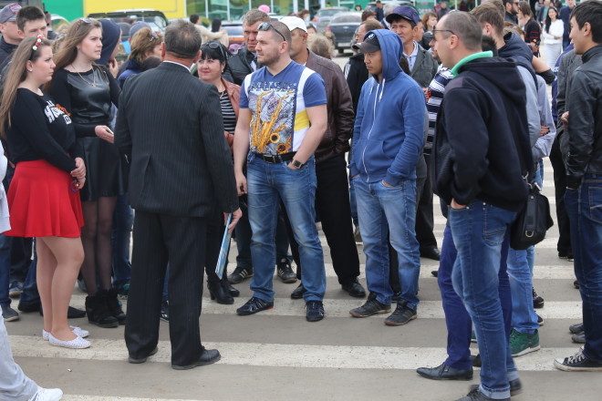 Сформировавшись, колона автомобилей начала выезжать, но у входа в торговый центр их стали останавливать полицейские. Стражи порядка проверяли документы и заставляли убирать флаги. Спустя какое то время, видимо из-за большого потока машин, проверка прекратилась и гаишники стали направлять автомобили в разные стороны. В итоге вместо одного автопробега получилось несколько десятков.