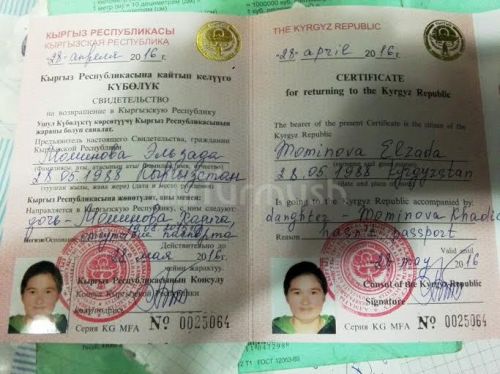 Моминова отметила, что в 2013 году обращалась в Генеральное консульство Кыргызстана в Казахстане. По словам женщины, она просила помочь ей в оформлении документов, однако сотрудники Генконсульства отказали ей. Издание сообщает, что через некоторое время после рождения второго ребенка супруг Моминовой попытался заставить ее подписать документы об отказе от детей. Тогда женщина сбежала от него и на попутках добралась до села Ак-Терек. Там она встретила мужчину и в гражданском браке родила дочь.