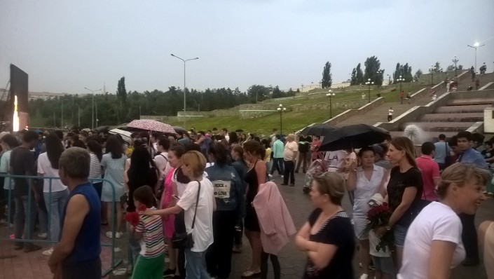 В конце вечера в Павлодаре резко испортилась погода. Но, несмотря на моросящий дождь, люди не торопились расходиться. Павлодарцы, не сдерживая эмоций, плакали под дождем.