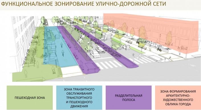 Для функционального зонирования всего улично-дорожного пространства города на основе Генерального плана и СНиП РК 3.01-01АС-2007 была проведена классификация улично-дорожной сети Нур-Султана. Протяженность улично-дорожной сети составляет 2387,3 километра.