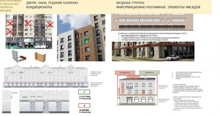 Дизайн-код ориентирован на улично-дорожное пространство и прилегающие к ним фасадные элементы зданий и сооружений.