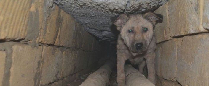 В Актау откопали заживо замурованную собаку