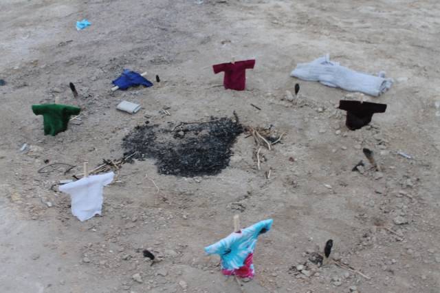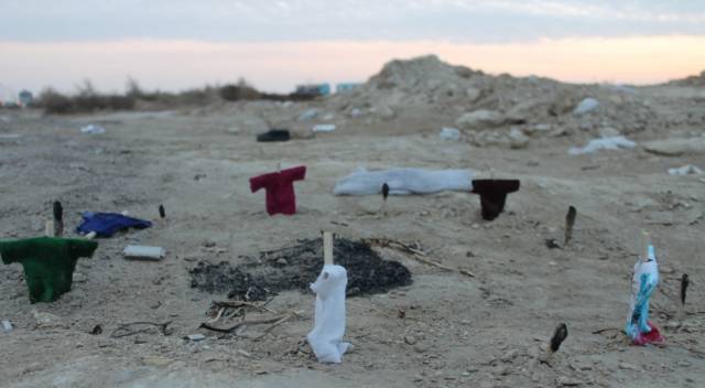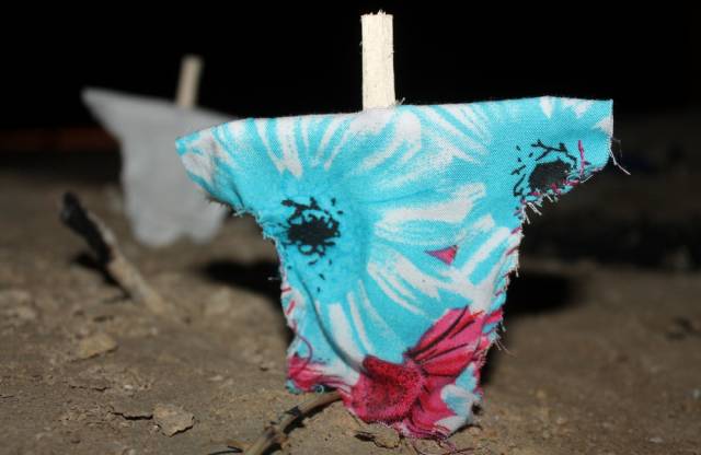 Житель Актау случайно обнаружил в 33-м микрорайоне города элементы загадочного ритуала - круг из скрещенных палок на земле, на которые были надеты "рубашки". О своей находке мужчина рассказал местному изданию "Лада".