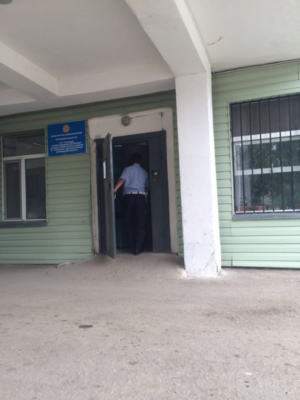 В областной больнице скорой медицинской помощи дежурят сотрудники полиции, передает корреспондент Tengrinews.kz.