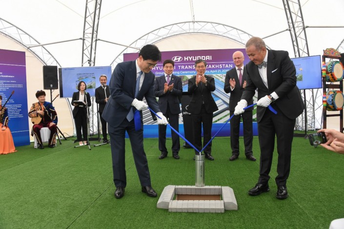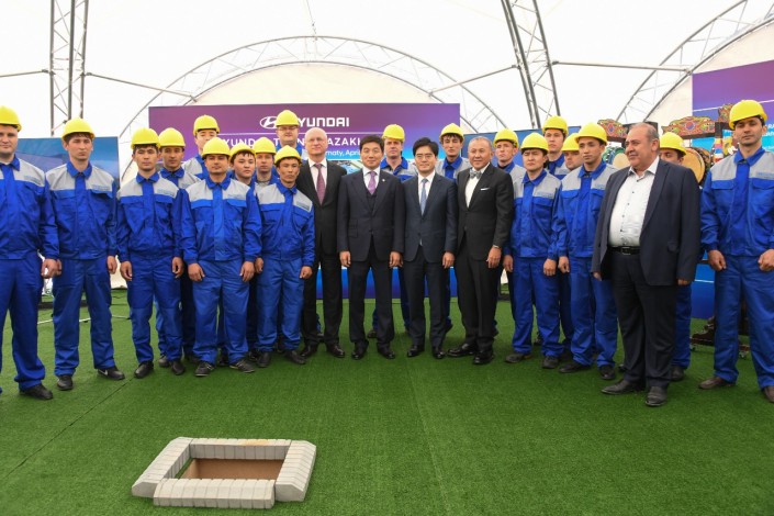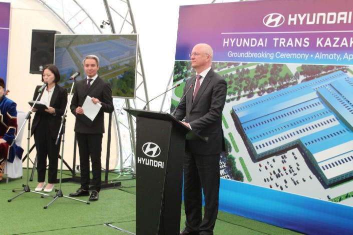 Первый камень в строительство завода по производству легковой техники Hyundai заложили министр индустрии и инфраструктурного развития Роман Скляр, министр торговли, промышленности и энергетики Южной Кореи Сон Юн Мо. Также в торжественной церемонии приняли участие аким Алматы Бауыржан Байбек и представители компании Hyundai.