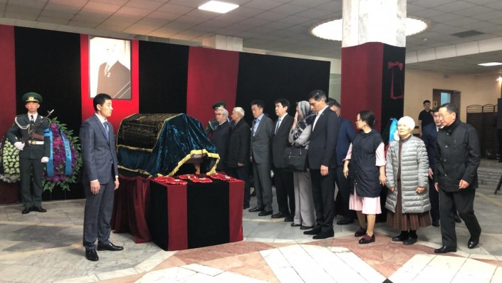 "Карим Кажимканович, родные и близкие. Только вчера здесь, в Доме приемов в Алматы, был поминальный обед. Вы знаете, вчера приехали многоуважаемые люди, начиная от главы правительства, спикера Сената, начальников правоохранительных органов, членов правительства и акимов ряда регионов, люди из всех уголков страны, кто знал нашего ага и его сына Карима Кажимкановича. Но тем не менее многие люди вчера не успели (проститься - прим. автора)", - сказал Бауыржан Байбек.