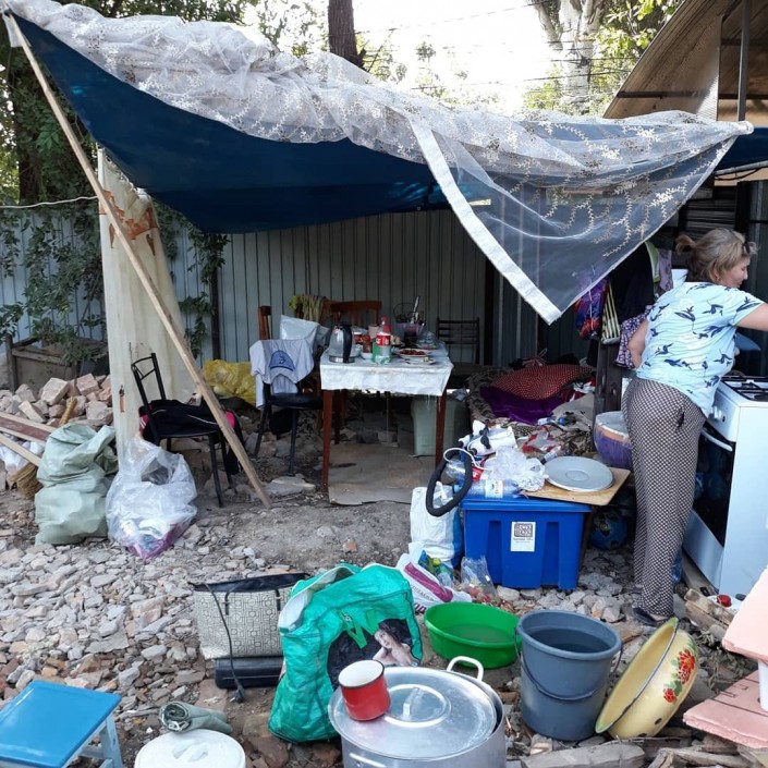 Первые несколько дней пенсионерка с дочерью буквально жили на руинах. Поставили опоры, натянули тенты и повесили занавеску. Позавчера они арендовали времянку и переехали.