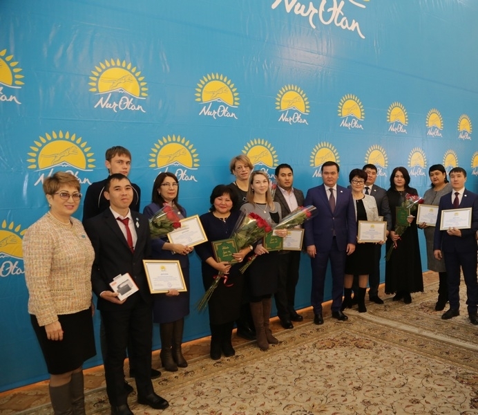 На собрании были вручены партийные билеты новым членам Nur Otan. И награждены победители областного этапа республиканского конкурса "Лучшая первичная организация".
