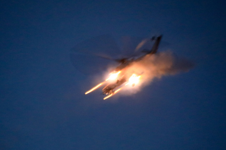 Экипажи многофункциональных истребителей Су-30СМ, штурмовиков Су-25, вертолетов армейской авиации Ми-17, Ми-35М вели огневое поражение наземных объектов условного противника неуправляемыми и управляемыми авиационными ракетами и бомбами.