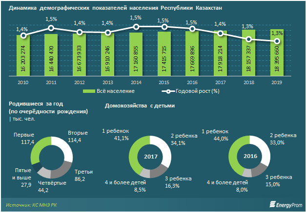 В 2019 году численность казахстанцев достигла 18,4 миллиона. Впрочем, это лишь на 1,3 процента больше, чем годом ранее. Для сравнения: в 2010-2017 годах рост составлял минимум 1,4 процента, а в 2014-2015 годах достигал 1,5 процента.