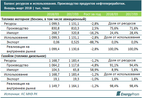 Пока, по итогам первого квартала 2018 года, внутренний рынок РК обеспечивался отечественными производителями бензином - на три четверти, дизелем - более чем на 90 процентов.