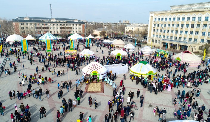 Отметим, что в этом году празднование Наурыза стартовало 14 марта с "Қауышу күні". Традиционно в преддверии Наурыза во всех районах проводятся субботники, ярмарки сельхозпродукции, праздничные концерты и выставки. Так, накануне на центральной площади были организованы "Домбыра-думан" и молодежный праздник "Жастар кеші", а в художественной галерее с 20 по 31 марта проходит выставка картин молодых художников "Көктем лебі". На городском ипподроме также были организованы состязания по конному спорту: аударыспақ, теңге ілу, қыз қуу и другие.