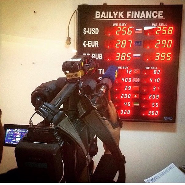 В центре города на глазах снимают данные по курсу. Все будет меняться.