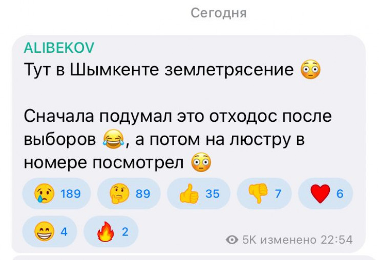 "У людей очень сильная паника. Мы живем на четвертом этаже, муж был на работе, я одна с четырьмя детьми, один из них грудной. Старшие в детской были, грудничок со мной. В кухне все трясло, словами не описать. Примерно минуту-две трясло, но очень сильно. Соседки прибежали, помогли. В лифт мы не сели, по лестницам спускались. Все жители наших домов на улицу вышли, так как дома аварийные. Их и при ветре трясет, не то, что землетрясение", - рассказала жительница Шымкента Азиза.