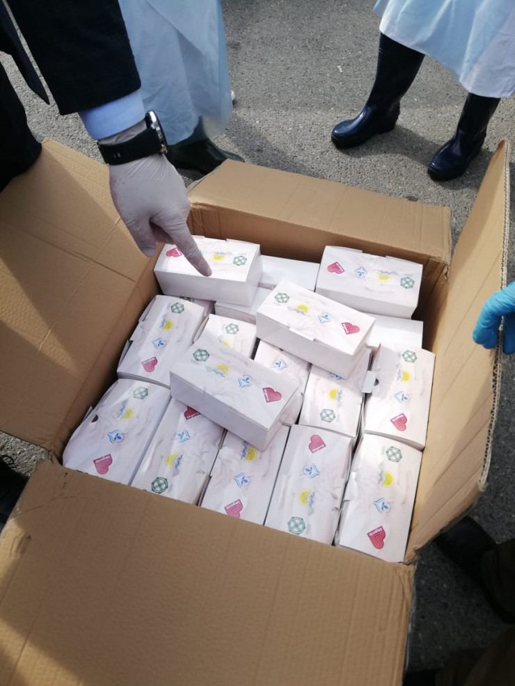 Средства защиты привезли для 200 семей этого населенного пункта. Для каждой из них предназначено по 50 масок.
