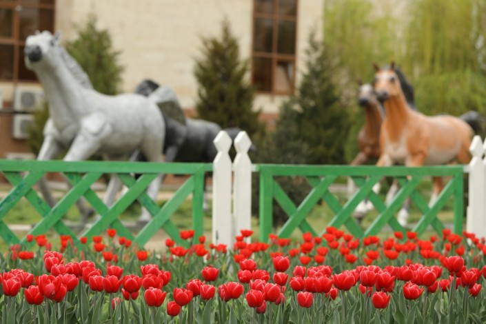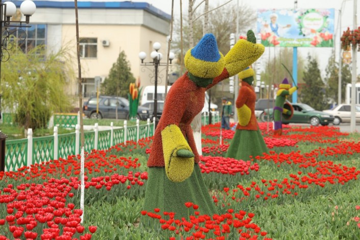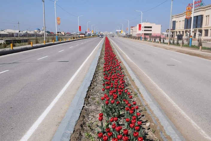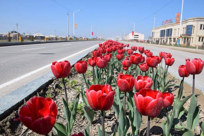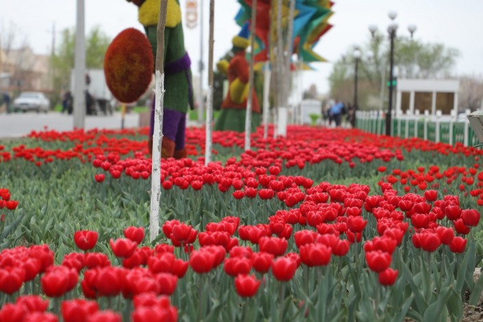 Цветы ярко-красного цвета можно увидеть на площади Алматы и по проспекту Бекзата Саттарханова, на улицах Амира Тимура, Тыныштыкулова и на территории мавзолея Ходжи Ахмеда Ясави.